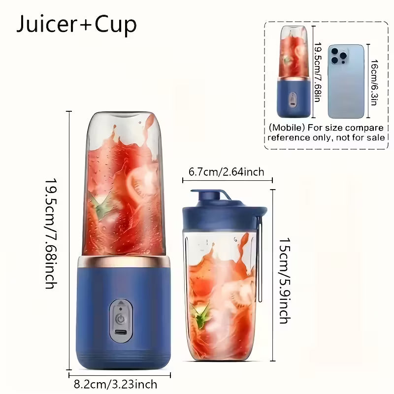 Licuadora Portátil Eléctrica USB con Doble Vaso | 6 Cuchillas de Acero |